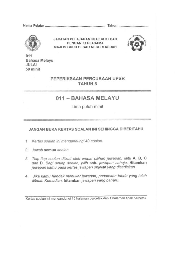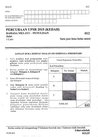 Soalan Upsr Penulisan Negeri Kedah